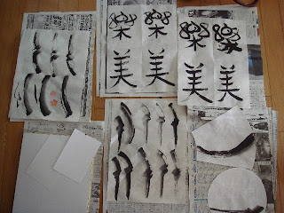 Five ladies joined the second Graphic Art Shodo.Writing kanji in artistic style on paper of a fan shape and a round shape,drawing a plum branch on it, it was completed beautifully with plum flowers made by a rubber stamp.The teacher kindly came for the lesson,taking two hours from her house.She was explaining all in Japanese which was very good to the ladies as a chance to listen to natural Japanese. Of course she understands English well enough.